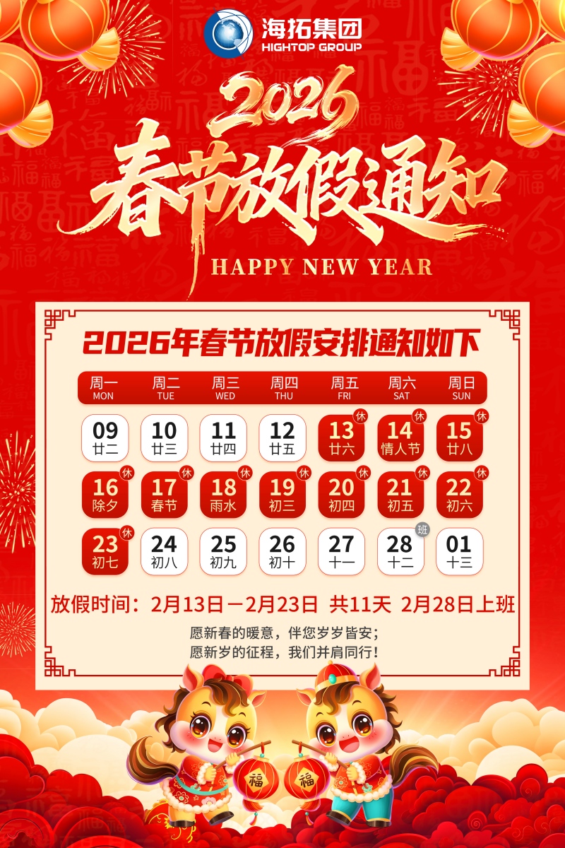 歲序更替,新春將至。為了讓海拓的伙伴們與家人共慶團(tuán)圓,結(jié)合國家法定假期及公司實際安排,山東海拓機械集團(tuán) 2026 年春節(jié)放假時間為: