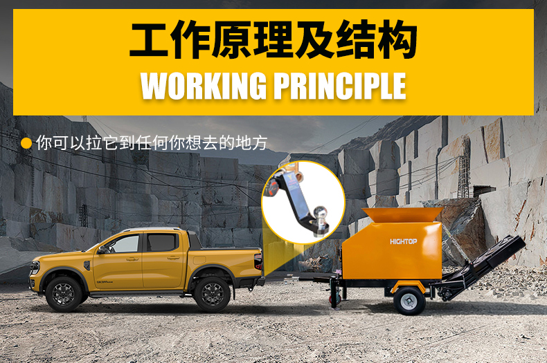 HTJC135拖車碎石機選用的輪胎拖車式結(jié)構(gòu),主要依靠前車尾部的拖車鉤與碎石機上面的連接裝置相吻合,固定好后靠前車的行走動力帶動這個碎石機轉(zhuǎn)場作業(yè)。